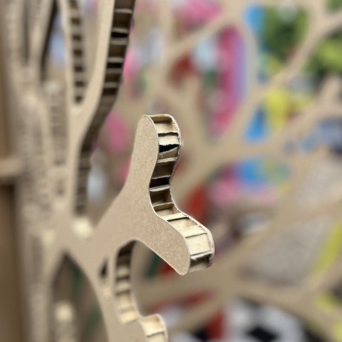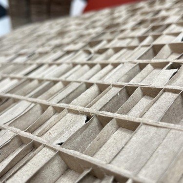 Nous achetons cette matière en grande quantité dans deux usines françaises. Il est 100% recyclé pour la finition carton naturel, il peut également recevoir un traitement au feu M1 sur demande. Il est utilisé pour confection de meuble, de structures de stand et de PLV charges lourde. Il est également utilisé pour la confection de lettres géantes en carton ou même de structure pour de la scénographie.