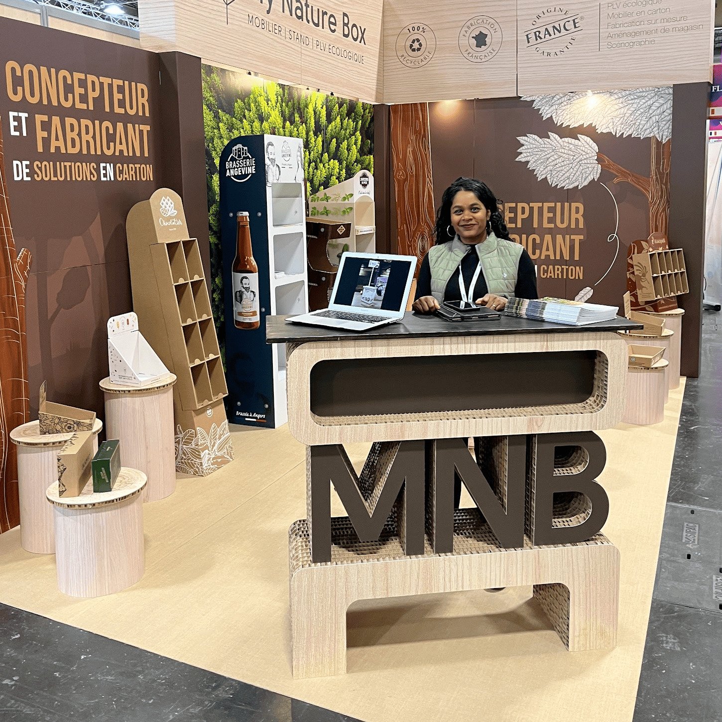 Optez pour des tabourets en carton peut vous offre une certaine flexibilité, sur les formes et la personnalisation grâce à l’impression. Ils apportent une touche esthétique et s’adaptent ainsi à l’identité visuelle du stand.