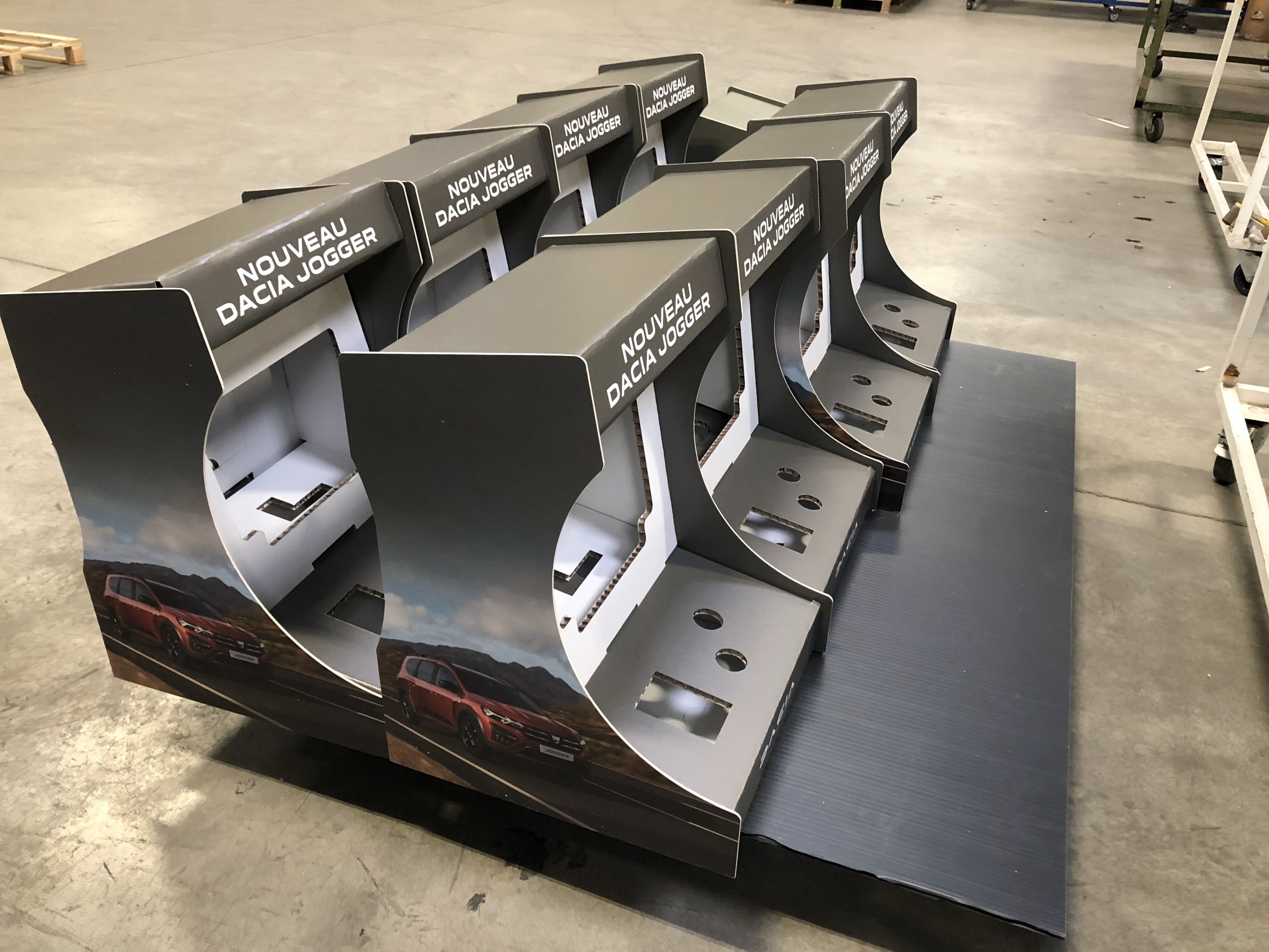 Un nouveau challenge c’est présenter à nous dans un délai très court. Concevoir et fabriquer une plv en carton sur mesure capable d’intégrer une partie électronique. Nous avons remporté ce défi avec la fabrication de 430 bornes de jeux constitués à 80% de carton. La partie électronique est constituée d’un écran extraplat, d’une carte mère, d’un transfo, d’une manette de jeux et de boutons. Ces éléments fonctionnent avec un système Androïd et sont réutilisables. Facilement démontable de la borne, ils pourront être reprogrammées et utilisés sur une autre PLV.