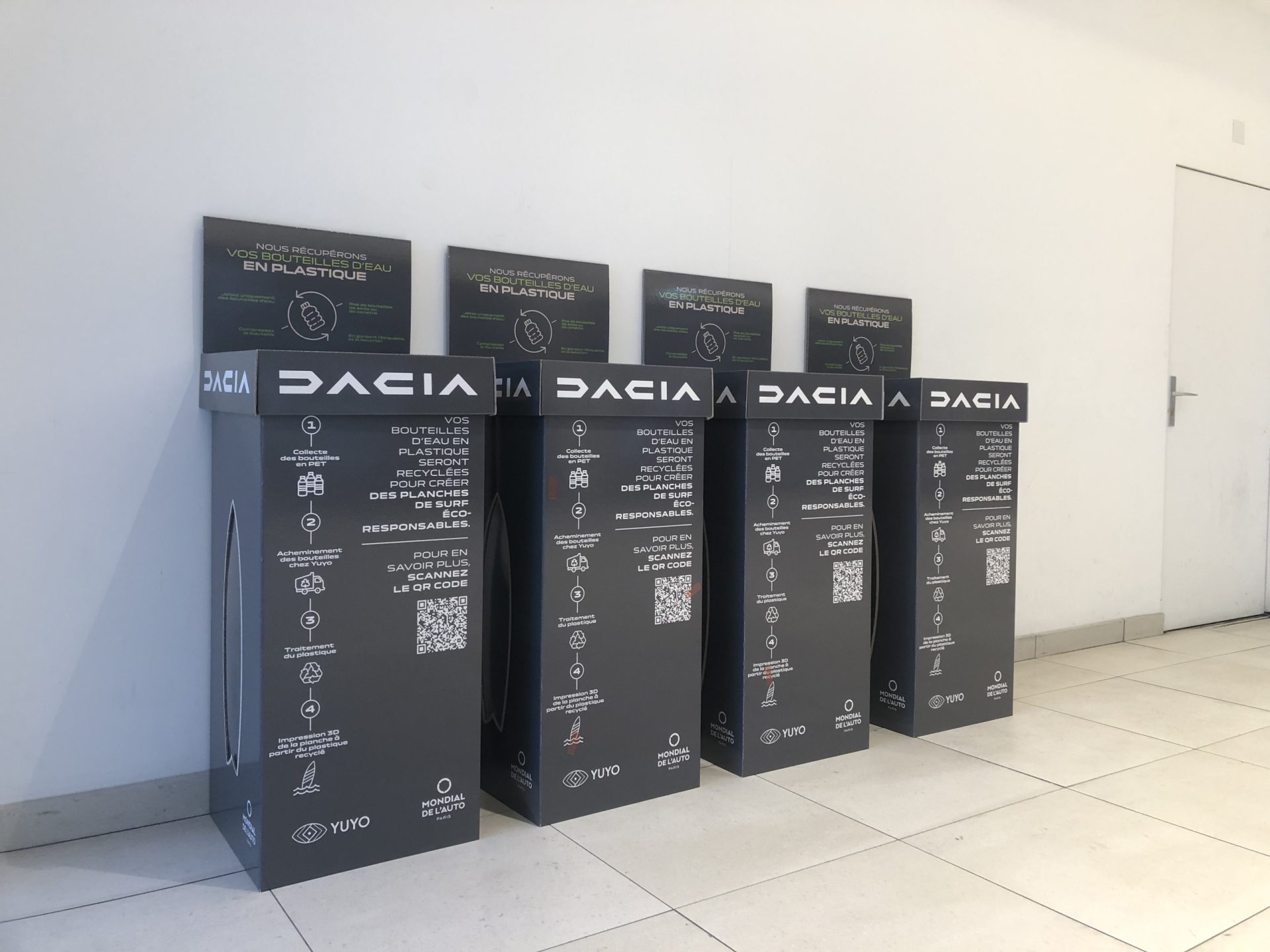 Plusieurs prototypes imprimés ont été fabriqués pour pouvoir tester la borne jusqu’au « go » définitif. L’assemblage a demandé de nombreuses ressources et le résultat finale est incroyable. Beaucoup ne s’imagine même pas qu’il s’agit de carton qui de plus est recyclable à 100%. Notre système de logistique est arrivé à bout des 3 semi-remorques qui ont été nécessaires pour les livraisons des bornes, bien emballée dans leur emballage individuel, chez TNT notre partenaires colis.