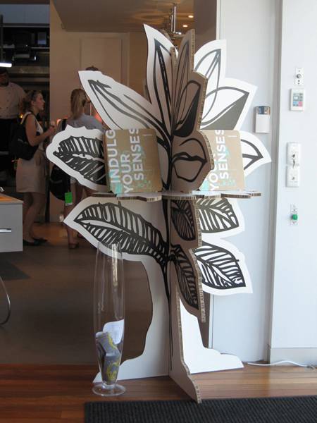 Présentoir réalisé sur mesure avec du carton maille tressée