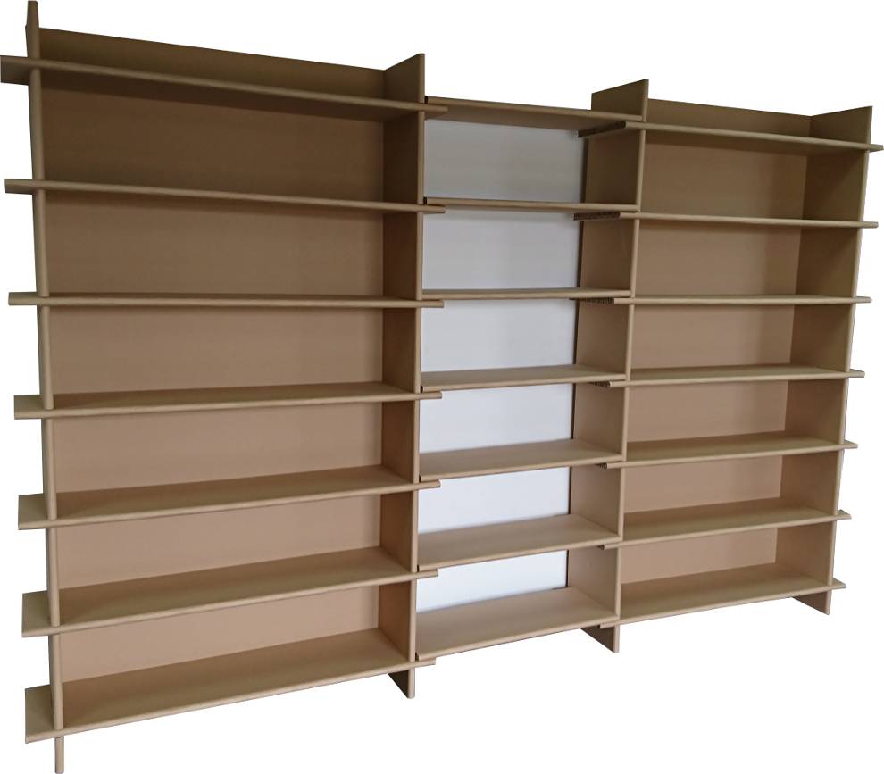 Étagère en carton alvéolaire avec tranches arrondies en façade