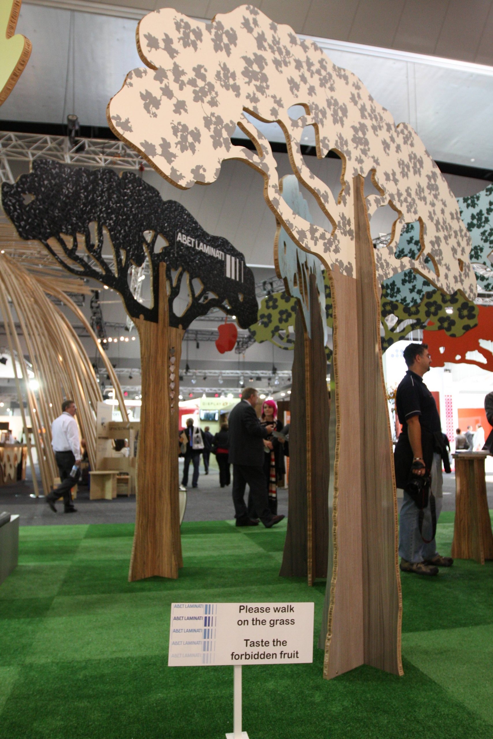 Arbres sur stand réalisés sur mesure avec du carton maille tressée