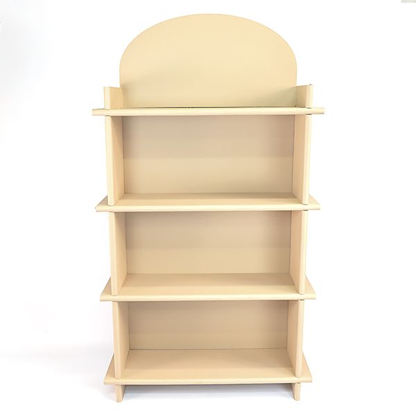 Étagère avec 4 tablettes intérieures. Tranches arrondies. Réalisée en carton alvéolaire kraft naturel. Livrée à plat. Montable et démontable.