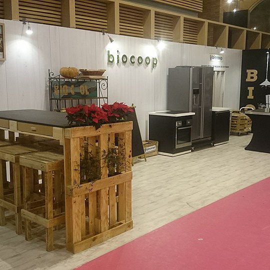 Fabrication sur mesure d’un stand en carton pour les murs et mobilier en palette.